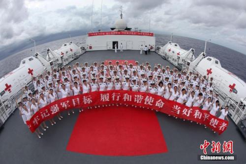 资料图: 2013年6月13日,中国“和平方舟”医院船在南海海域举行宣誓签名仪式,准备迎接“10+8”东盟防长扩大会人道主义援助救灾联合实兵演练任务。中新社发 琚振华 摄