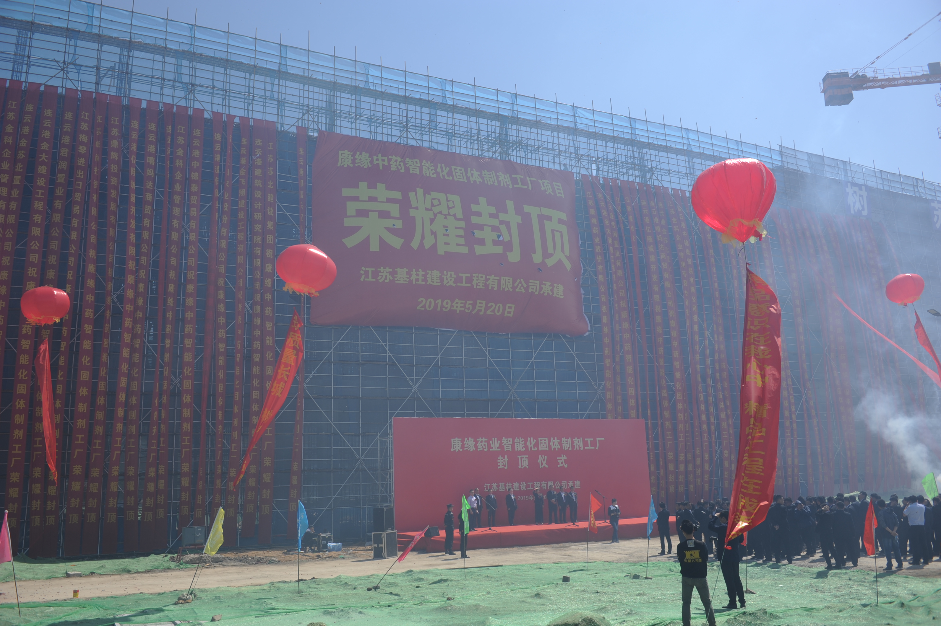 5月20日,苏北建设集团江苏基柱建设工程有限公司承建的“康缘股份智能化固体制剂车间”项目封顶仪式盛大举行。苏北建设集团董事长徐君、总经理鲍杰、康缘股份副董事长凌娅、党委书记滕苏扬、党委副书记高海鑫、生产总监包乐伟、技改总监温开明、迈森置业工程总监赵斯祥等出席此次盛会。