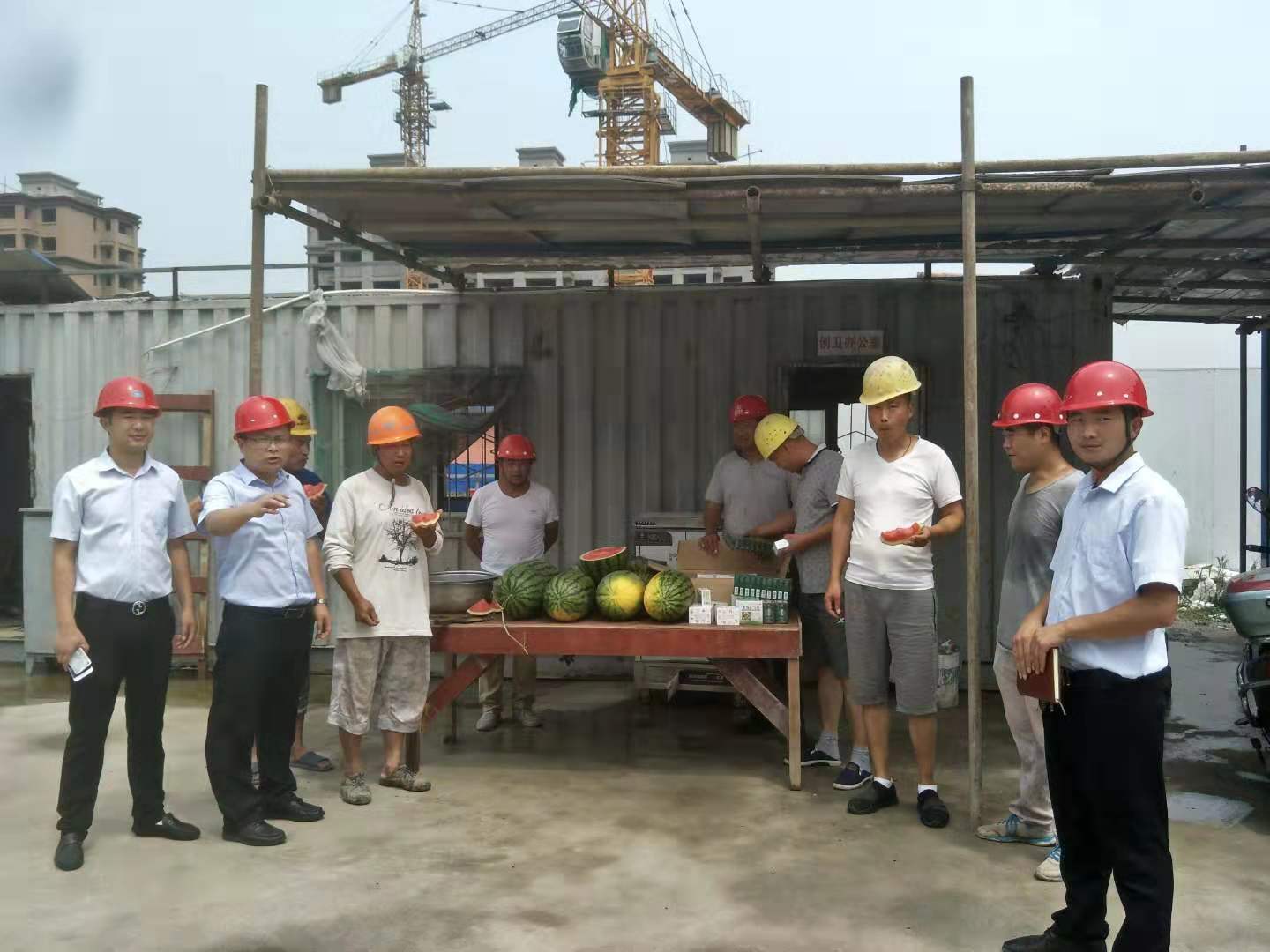 在热浪滚滚的施工现场,钱诗楷传达了徐君董事长的关怀,感谢大家在高温下辛勤作业,对大家说辛苦了!并叮嘱大家一定要劳逸结合,注意安全,保重身体。